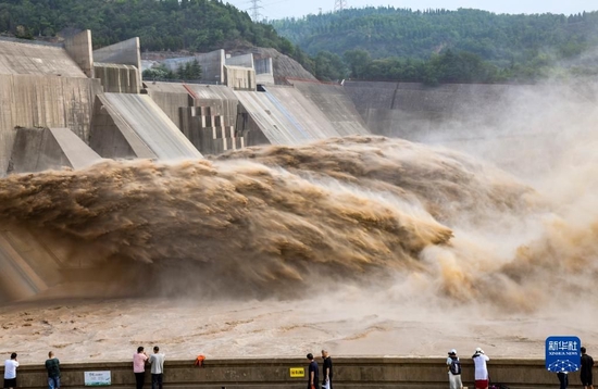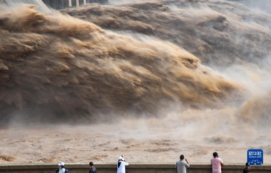 7月4日,游客观看黄河小浪底水库排沙出库。新华社发(苗秋闹 摄)