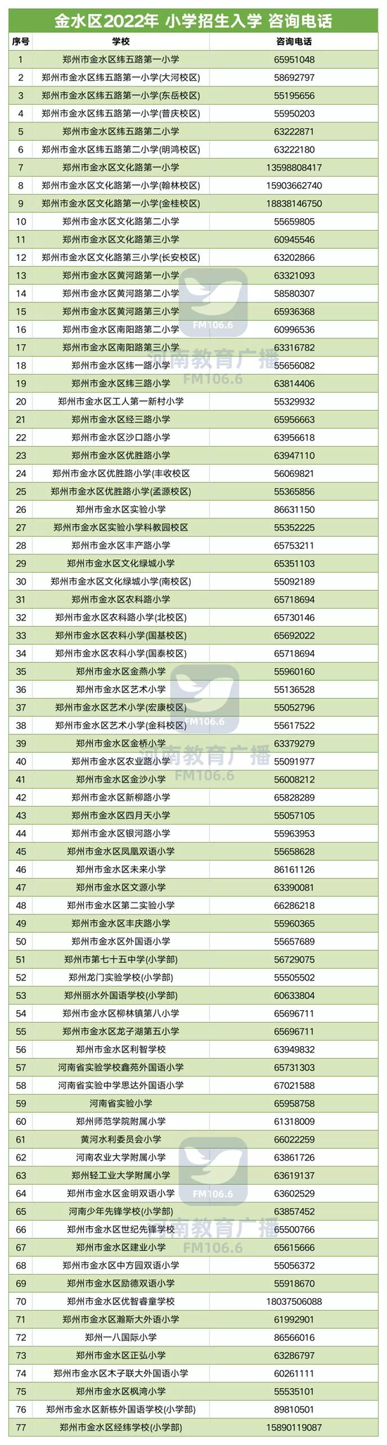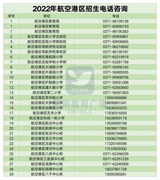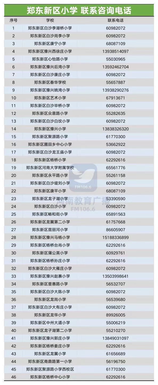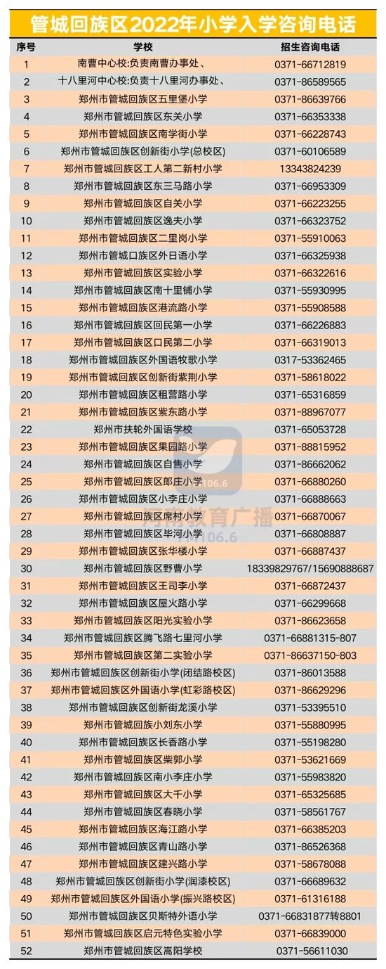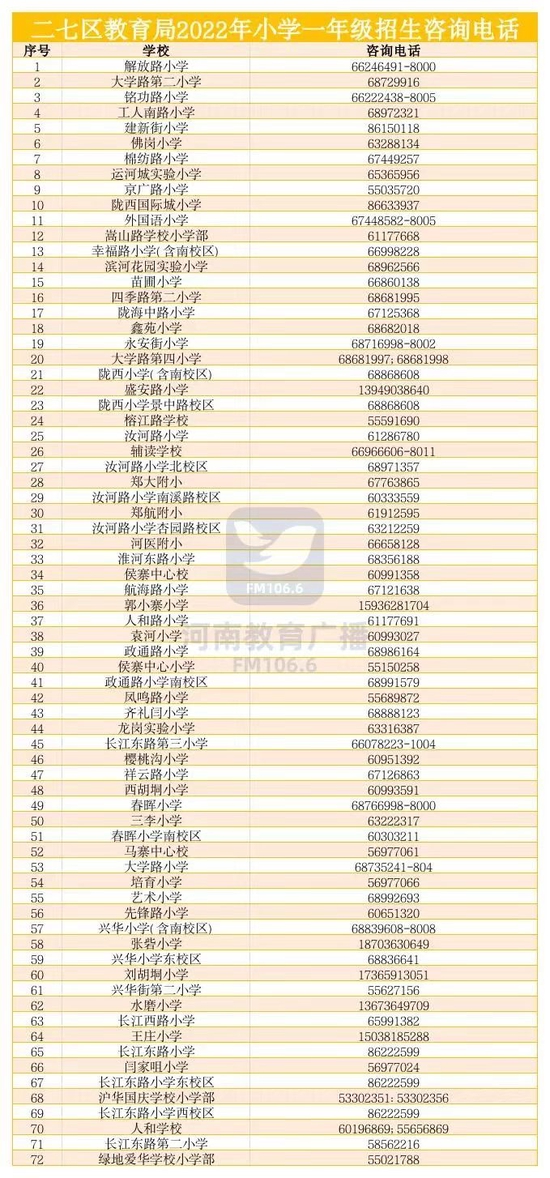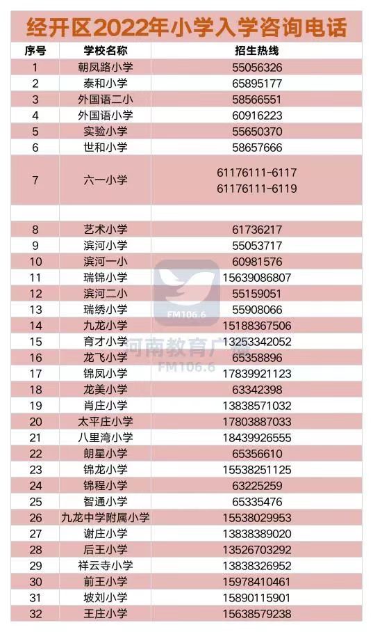 @家长收藏,郑州市区2022年小学入学咨询电话一览