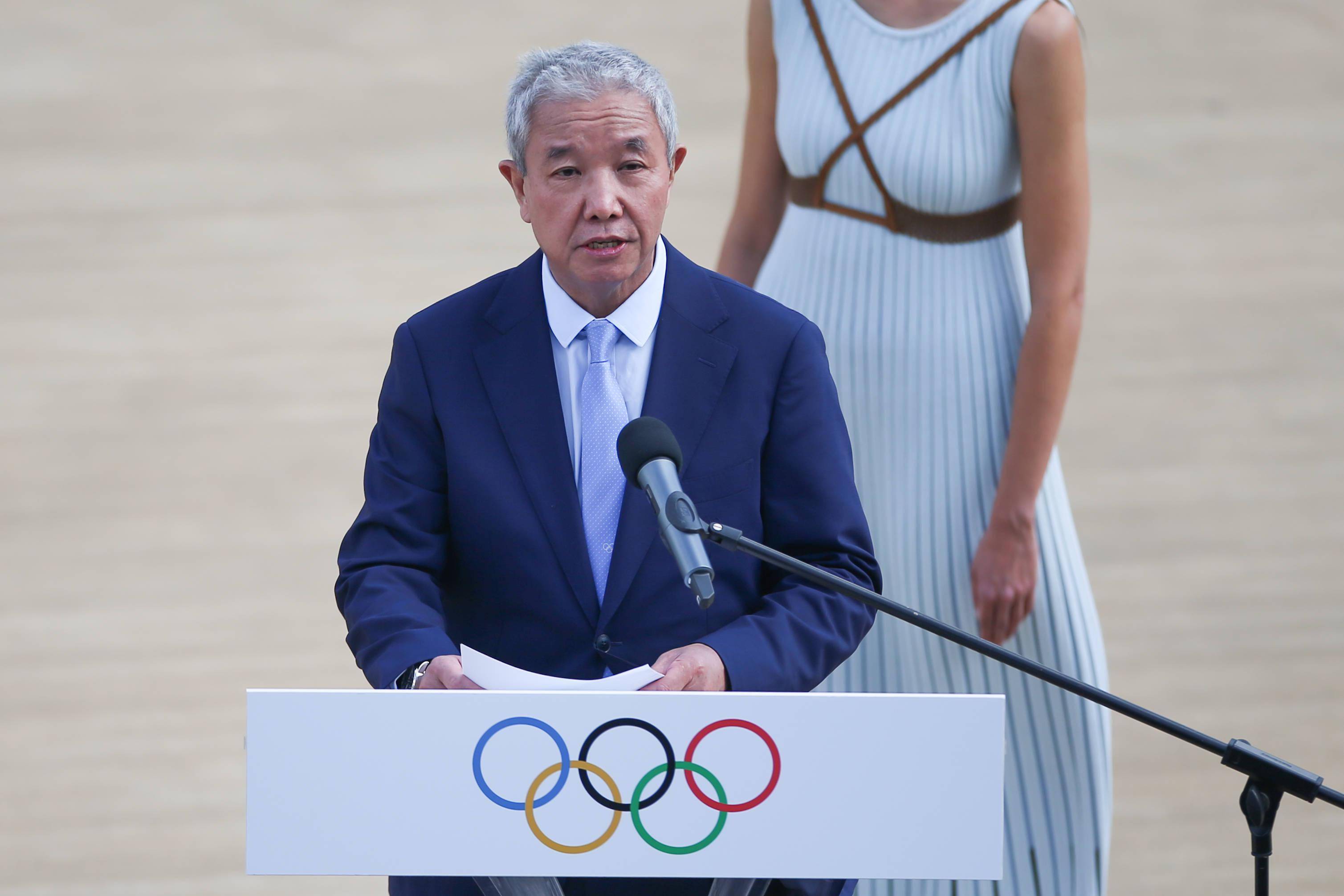 10月19日,北京冬奥组委特别代表、北京冬奥组委副主席于再清在交接仪式上致辞。