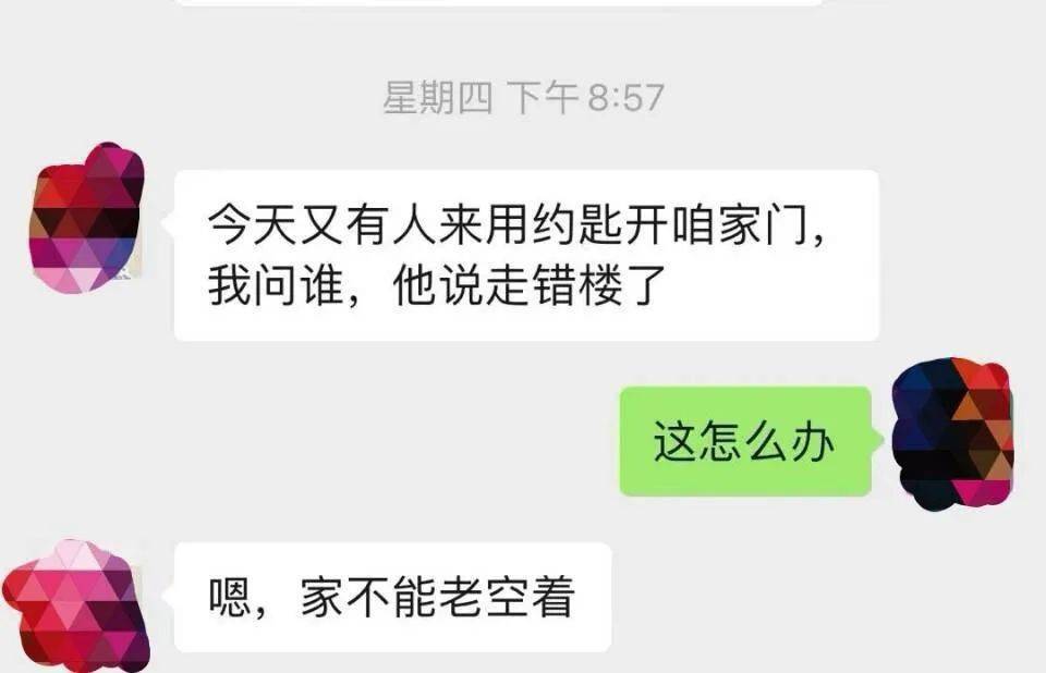 小李说,母亲之所以用了个“又”字,是因为之前曾发生过被敲门但不回应是谁的情况。吴女士告诉记者,当天晚上她回家后,就把房门反锁了,7点多时在客厅听到有转锁的声音,她原以为是女儿回来了,但在准备开门前还是先问了句“是谁”,“门外是一个男的,回答说‘这不是小强家吗’?”吴女士说。这样的回答,引起了她的怀疑,她认为这句话代表着“不是回自己家”。“去别人家不是应该敲门吗?怎么能直接用钥匙开门呢。”吴女士说。
