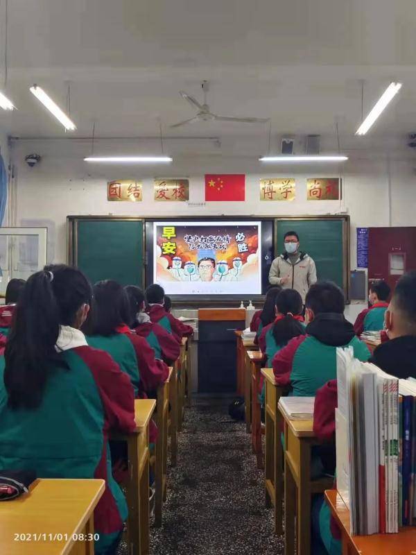 据了解,学生返校前,已将三次核酸检测结果、本人及共同居住人的健康码、行程码截图交给班主任。学生上学、放学以及在校期间,一律佩戴口罩(体育课除外),同时自备3个口罩备用。学生进入校园后,严格按照双通道保持1米间隔距离分流进入校园,七年级学生走测温门通道,八、九年级学生走人工测温通道,如出现体温异常(≥37.3°C)者立即报备校医处,按照疫情防控处置流程进行处置。复学后,学校将继续加强疫情期间班级常态化管理,实行错峰放学。