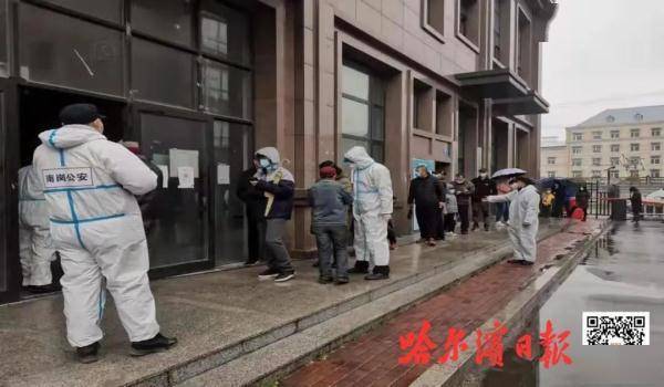 哈尔滨市公安局以派出所现有警力为基础,统筹全局,进行警力调度和补充。执勤警力提前与街道办事处、社区工作人员对接,通过设置警戒线、提示牌、广播喇叭等,做到“人员较多蛇形队形、人员较少直线队形”,保持群众一米间隔“不交流、不聚集”。