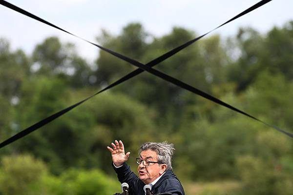 当地时间2021年8月29日,法国瓦朗斯附近的伊泽尔城堡,梅朗雄在一次会议期间发言。人民视觉 资料图