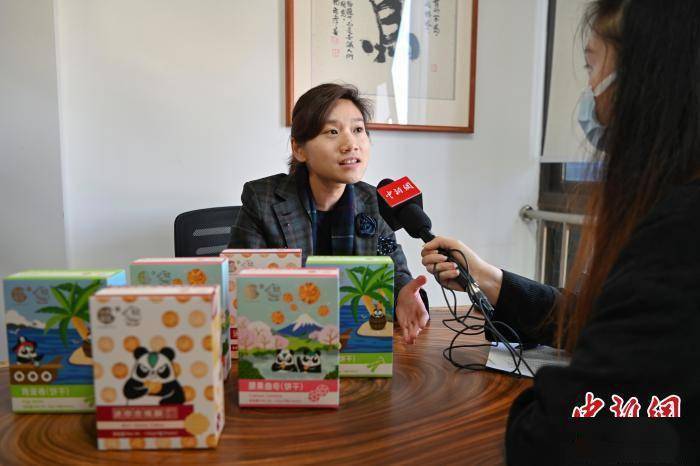 该公司创始人兼行政总裁曾婉雯的办公桌上,摆放着几盒澳门本土文创品牌“梳打熊猫”与澳门糕点品牌“十月初五”联名的食品。据介绍,“梳打熊猫”是澳门原创文化创意品牌,以“熊猫三兄妹”的插画形象对外传播中华文化。