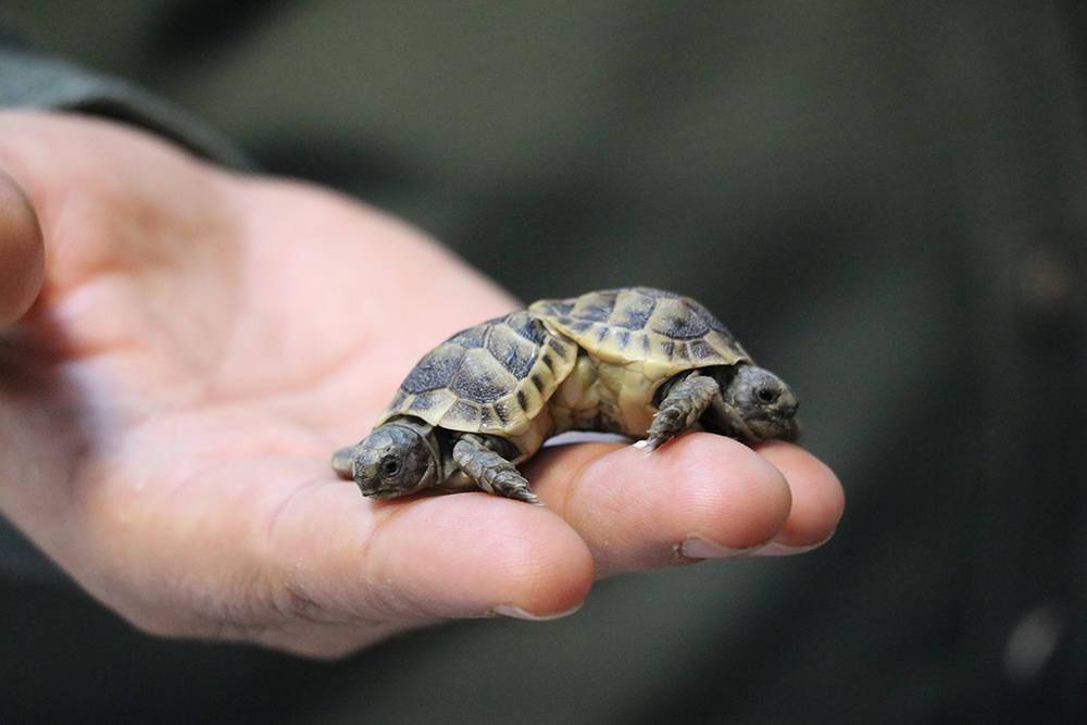 当地时间2021年11月11日,土耳其代尼兹利,帕姆克列大学的实验室展示了双胞胎连体海龟。