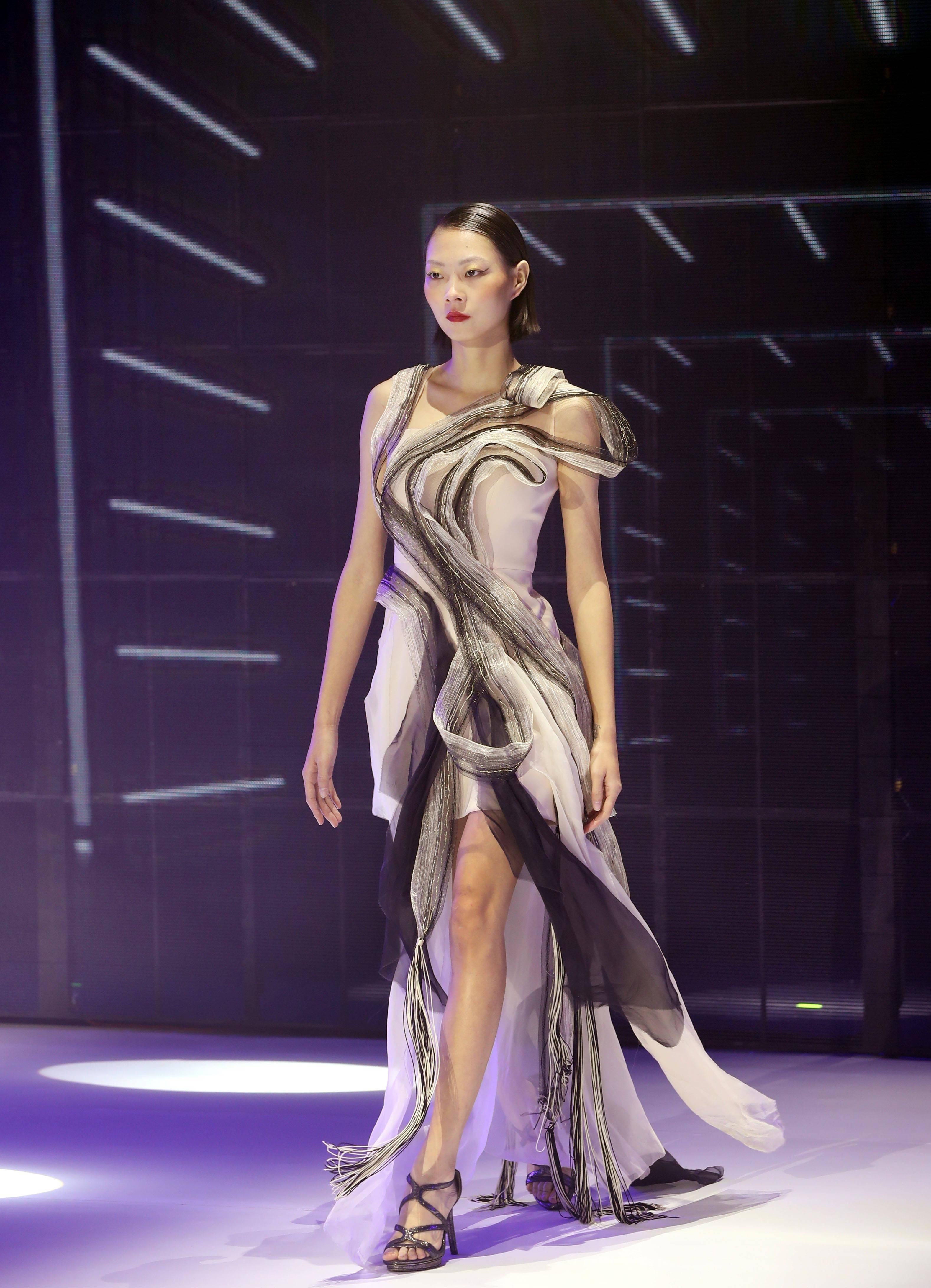 11月12日,模特在“第十届上海高级定制周”开幕大秀上展示时装。