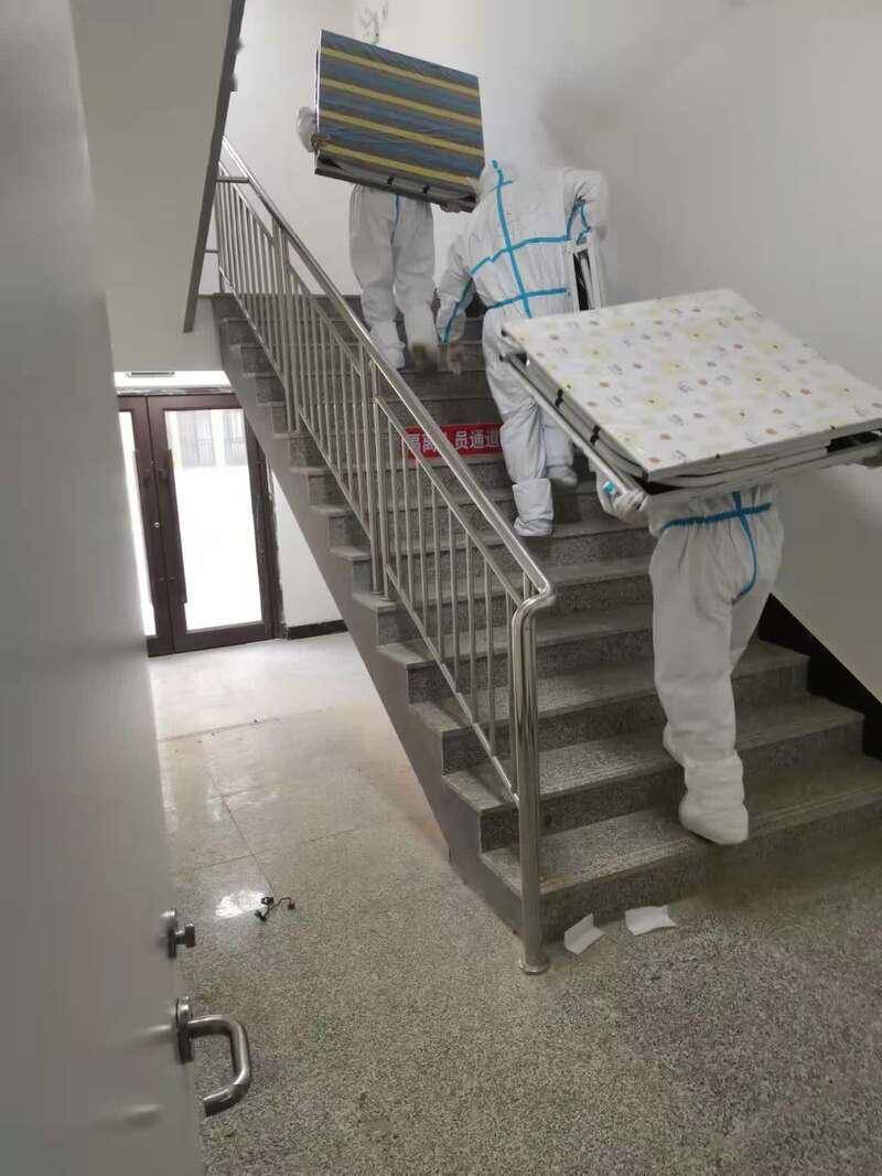 “我们负责10栋公寓楼近5000名大学生的物资配送工作,除了三餐,每天还要配送不少15公斤装的桶装饮用水,最多时一天一栋楼需要扛近80桶水。前三四天特别累,有的志愿者扛水累坏了腰,还穿上了护腰继续坚持。服务工作步入正轨后,我们的工作时间一般从早上8点到晚上7点。现在虽然还睡在食堂,但政府给志愿者配备了行军床,物资保障很充足。”郑心说。