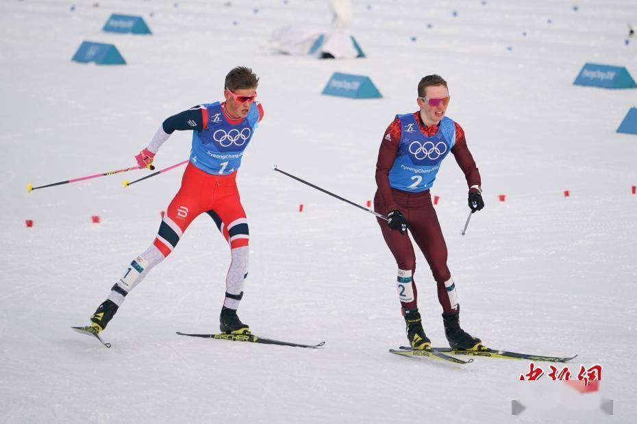 2月18日,平昌冬奥会越野滑雪男子4×10公里接力决赛举行,挪威获得金牌,俄罗斯奥林匹克选手获得银牌,法国获得铜牌。图为俄罗斯奥林匹克选手杰尼斯·斯皮佐夫(右)与挪威选手约翰尼斯·克莱博(左)进入最后一圈比赛。 中新社记者 崔楠 摄