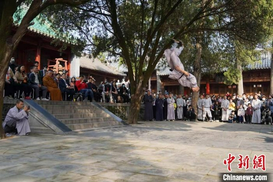 图为今年10月少林寺常住院内进行的一场武术表演。 阚力 摄