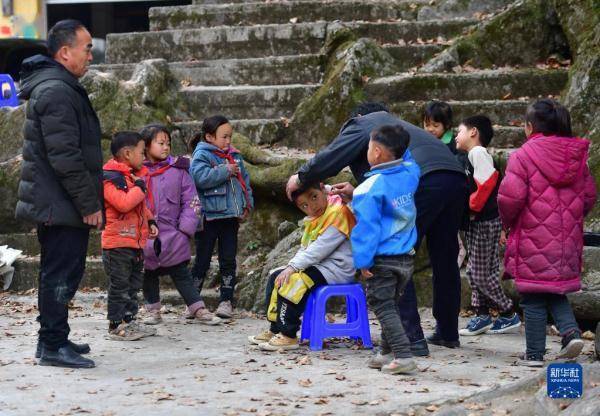 乌英苗寨教学点的老师在给学生理发(12月8日摄)。