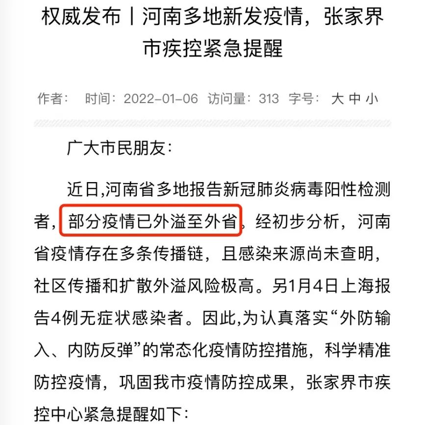 本文综合自微信公众号“河南省教育厅”(ID:henaneducation)2022年1月8日《河南昨日新增本土确诊43例,其中郑州24例、许昌18例、周口1例!》、 “中国新闻网”2022年1月7日《河南多地疫情防控升级 多行业再次按下“暂停键”》、微信公众号“凤凰网”(ID:ifeng-news) 2022年1月6日《唐驳虎:单日新增确诊突然超过西安,河南怎么了?》。