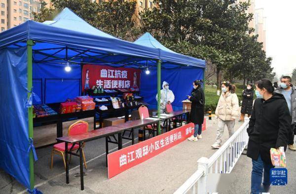 1月7日,西安市曲江新区一社区居民在进驻小区的便利店购买生活物资。