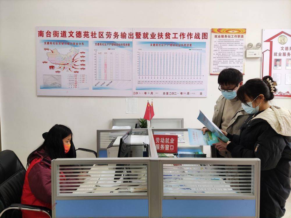 记者在文德苑社区看到,社区设立就业帮扶工作站,门口广播轮流播放招聘信息,展板上写着公司简介、招聘岗位、福利待遇等内容。社区党总支书记吴道兴说:“脱贫不脱帮扶,我们努力为群众推荐岗位。”
