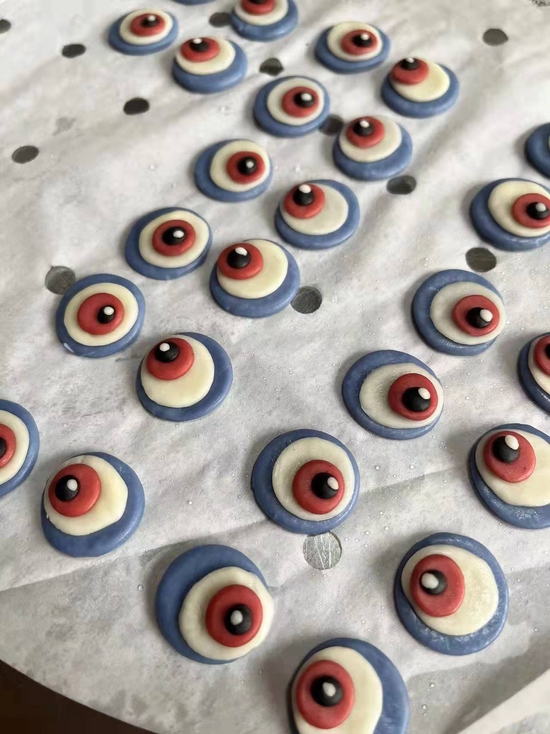 别看这一只小小的虎馍,工艺可不少,用料也不简单。“虎馍的每个部位,都是用食材做的,黄色的身体,是用南瓜活的面;红色的是红曲米;蓝色的是用蝶豆花茶泡的水活的面。”陈华说,为了显白和增加口感,和面时没有用水,全部都是用牛奶制作的。