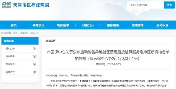 2月9日,天津市医保局发布关于公布启动跨省异地就医费用直接结算服务定点医疗机构名单的通知(津医保中心办发〔2022〕1号),通知中将近期启动跨省异地就医门诊、住院费用直接结算服务的定点医疗机构名单予以公布。具体名单如下↓