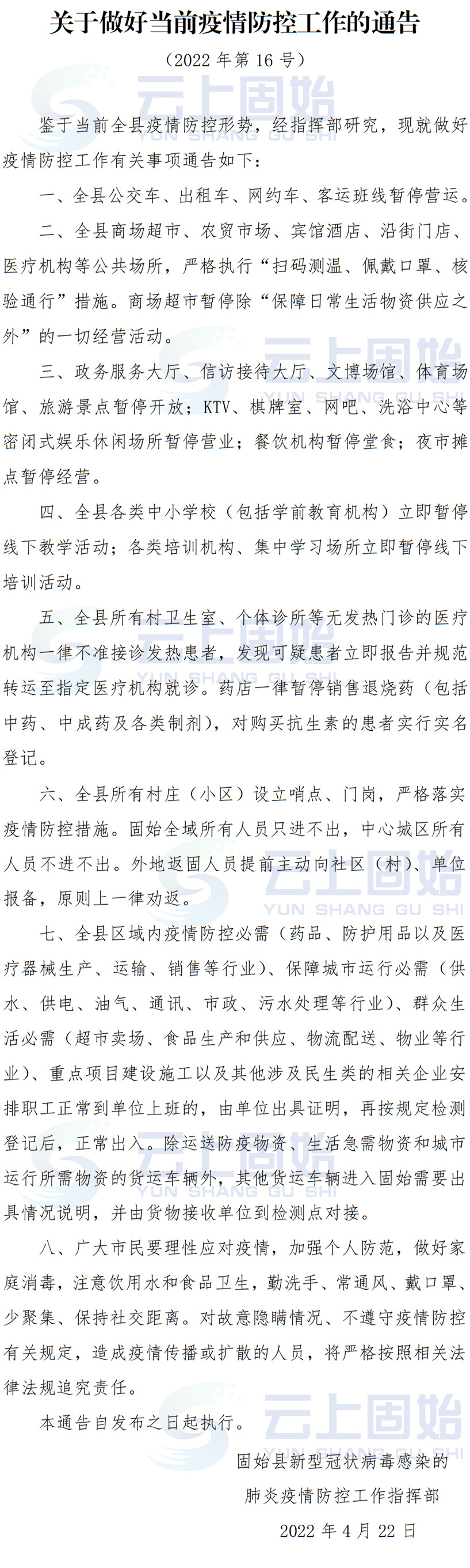 【固始:全县公交出租车停运,餐饮暂停堂食,中小学暂停线下教学】#五一能跨省出游吗##信阳固始新增1例确诊病例##信阳固始划定10个封控区#