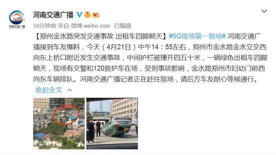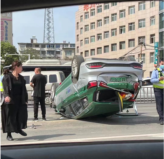 后续来了!郑州金水路突发交通事故 出租车四脚朝天