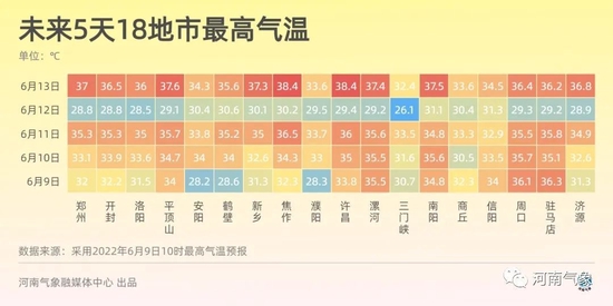 下周初(13-14日),大范围高温回归,全省大部最高气温35℃以上,部分县市达37-39℃。