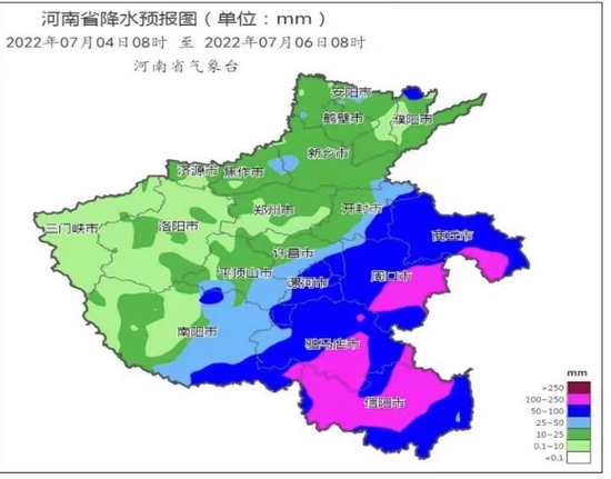 图1 2022年7月3日08时-4日08时河南省降水预报图
