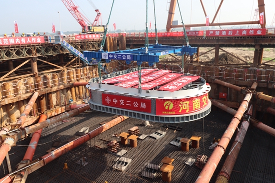 安罗高速原阳至郑州段项目是我省高速公路“13445工程”重点建设项目,其中,黄河特大桥全长15.223公里,是黄河上最长的公路桥梁。中交二公局黄河高速2标项目经理张其玉介绍,黄河特大桥主桥作为项目全线重要的控制性工程,设计为双塔双索面钢混组合梁斜拉桥。黄河特大桥的主塔是主桥梁斜拉的主要承力结构,建成后索塔高182米,是黄河河南段塔高之最,首节索塔的吊装,为主塔顺利施工奠定了坚实基础,标志主桥下部结构正式转入索塔结构施工阶段。