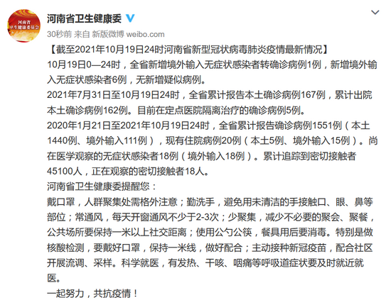 [截至2021年10月19日24时河南省新型冠状病毒肺炎疫情最新情况]