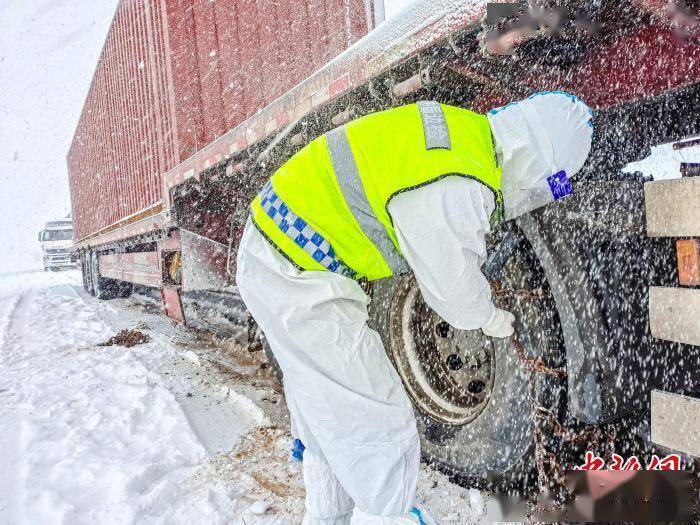 民警为通关车辆安装防滑链。 赵井斌 摄
