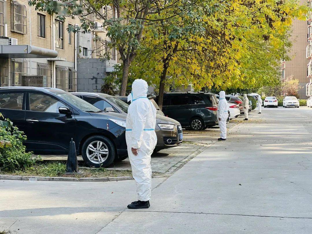 记者在小区北侧巡访发现,除北门外,北侧其他出入口已经用蓝色围挡彻底封闭。透过一侧围栏可以看到,每个单元门前都有身穿防护服的工作人员值守。