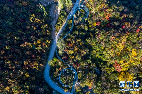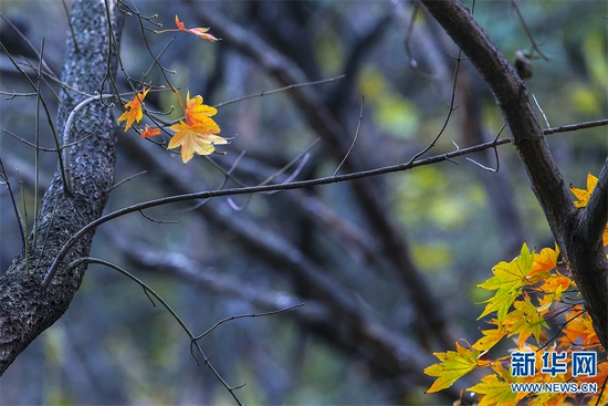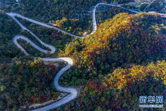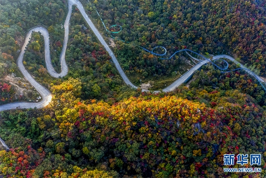 时下,秋色正浓,尧山深处到处色彩斑斓,美不胜收。新华网发(何进文 摄)