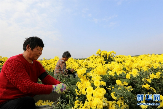近年来,河南省焦作市温县积极引导农民因地制宜种植怀菊花、怀山药等“四大怀药”,带动农户增收致富。新华网发(徐宏星 摄)