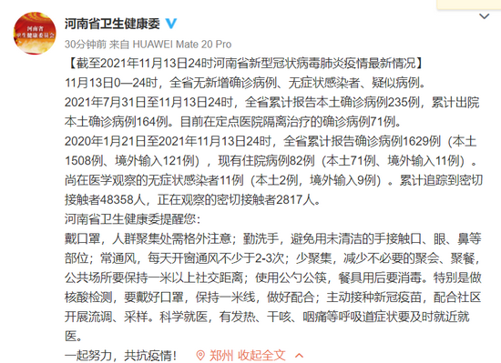 [截至2021年11月13日24时河南省新型冠状病毒肺炎疫情最新情况]