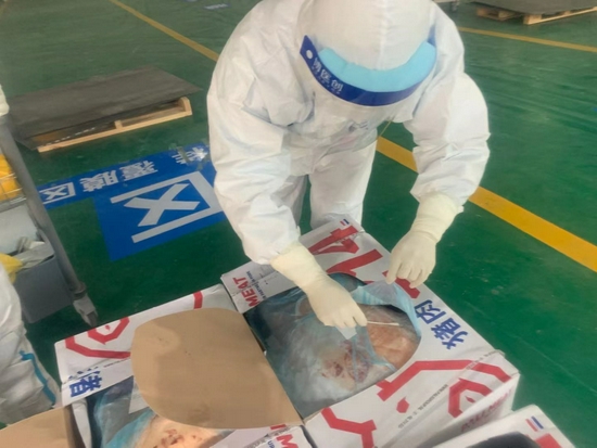 河南万邦国际农产品物流城市场部经理宁亚兵说:“我们市场设立的有‘进口冷链集中监管仓’,集中对进口冷链产品进行监管。去年这个监管仓设立后,一直在持续运营,集中监管至今。商户需要提前24小时使用郑冷链系统进行报备。货物到达现场后,商户办理入仓手续,随后,开始对货物进行集中消杀、卸货,同时还要对司机、货物等,进行现场的核酸检测。检测结果没问题了,赋‘郑冷链’二维码,办理出仓手续。监管这一块,我们这里有市场监管、疾控等部门设立的进口冷链专班,强化进口冷链监管。公司组织专门的消杀队伍,每天对园区进行无死角消杀。商户进口冷链产品的样品货与国产货物分开销售。进口冷链商品开箱要做消杀并留存消杀记录。整个园区的进口冷链从业人员要求每周一次的核酸检测。要提醒消费者的是,购买时一定要查验‘郑冷链’二维码,支付宝扫码可以了解这批货物的消杀情况和检验检疫情况等信息。”