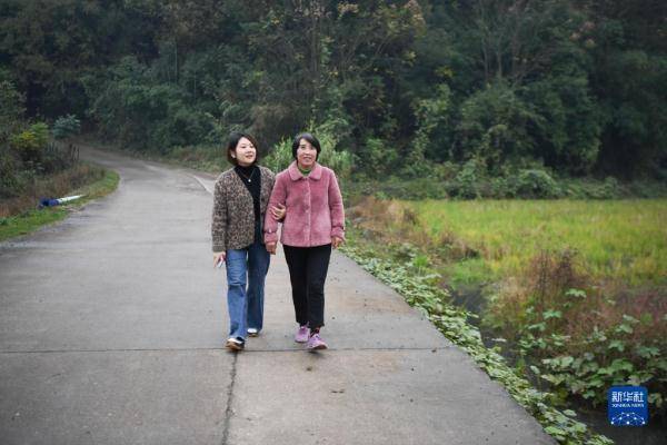 11月17日,周文娟(左)和蒋冬娥走在湖南省永州市零陵区和谐村。