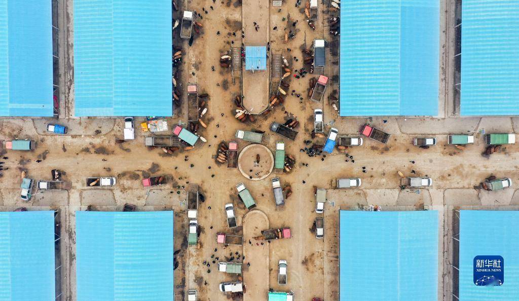这是1月19日拍摄的宁夏固原市西吉县兴隆镇单家集活畜交易市场(无人机照片)。新华社记者 冯开华 摄