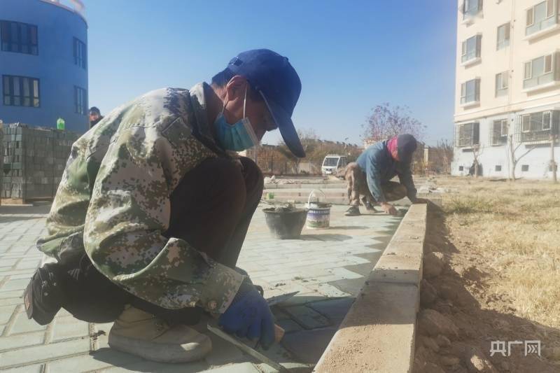十三师新星市黄田农场全鑫社区为居民修建停车位。陈路娟 摄 央广网发
