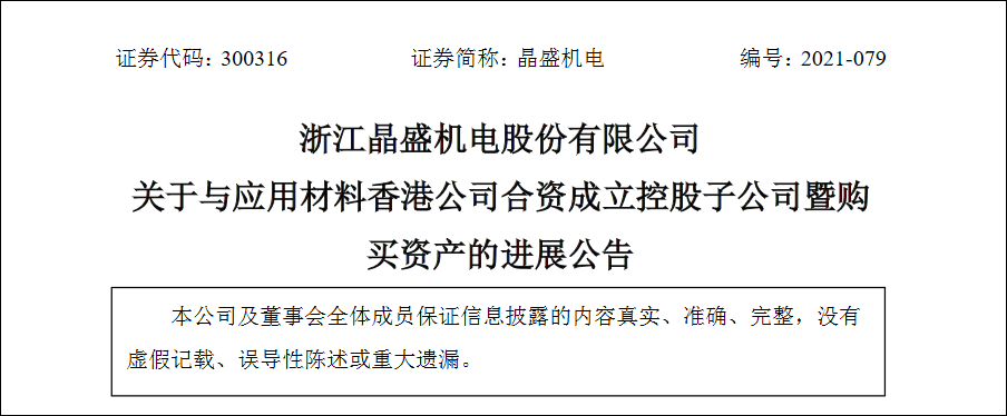 收购遇阻的消息也得到了晶盛机电方面的证实。晶盛机电董事会24日发布公告指出,“近日,子公司科盛装备接到通知,本次交易在申报相关政府审批时,意大利政府出具决议否决了本次交易,本次交易未能通过意大利外商投资(即“黄金权力法案”)审批。公司将与应用材料公司共同努力与意大利外商投资审批部门进行进一步沟通,并及时披露进展情况。”