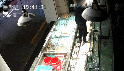 近日,厦门市公安局公共交通分局水上派出所接辖区码头一餐厅员工报称,当晚19时40分许,一男子在该餐厅海鲜池内盗走两只帝王蟹(一只4.8斤,一只5.1斤,均系进口俄罗斯帝王蟹,价值约2300元)后逃离。