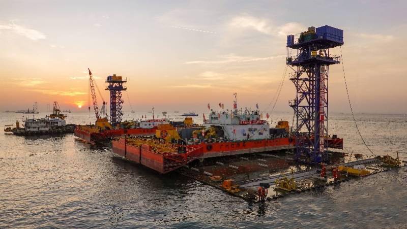 深中通道建设团队在进行E29管节沉放作业。通讯员供图