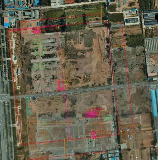 (北坊墙、夯土院墙东北角及南北向道路遗迹)