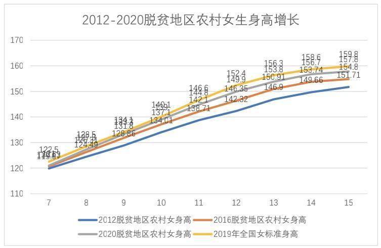 2012-2020 年欠发达地区农村女生身高增长情况。图片来源于报告