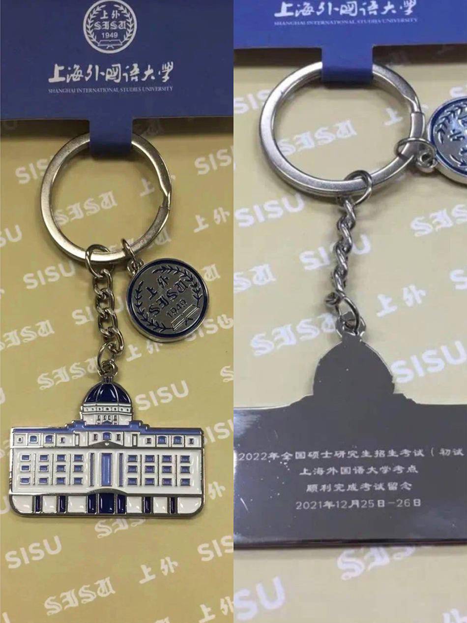 令上海外国语大学考点考生惊喜的是,顺利完试还有专属纪念品可领——一枚上外钥匙扣。只要入场材料齐全且考试全程无违规作弊行为,考生就可以带走这枚纪念品,它的背面也为考生这段奋力一搏的时光留下注脚:2022年全国硕士研究生招生考试(初试)上海外国语大学考点顺利完成考试留念,2021年12月25日-26日。