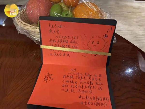 酒店工作人员为每位考生送上温馨的祝福卡片,为学子们加油打气。