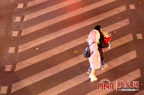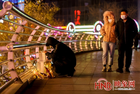 映象网讯(记者段晋哲文/图)昨夜,郑州处于大风、寒潮当中。24到27日全省大部地区气温将出现今年入冬以来最低值,郑州的气温也跌至冰点之下。骤降的温度虽然让不少人猝不及防,但夜晚的街道上,却有很多满含暖意的瞬间。