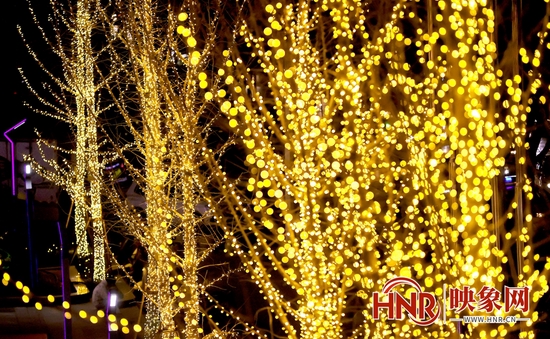 路边树枝上的暖灯