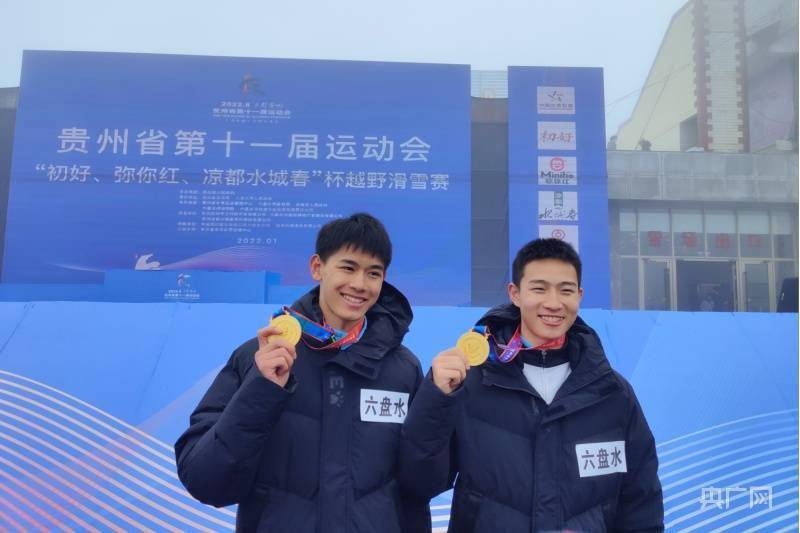 六盘水代表队获越野滑雪男子团体赛冠军的两位运动员(央广网发 刘佳佳 摄)