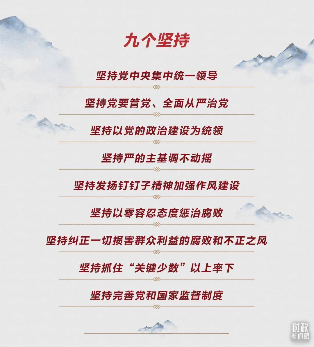 习近平总书记在会上还指出,党的十八大以来,我们深入推进管党治党实践创新、理论创新、制度创新,对建设什么样的长期执政的马克思主义政党、怎样建设长期执政的马克思主义政党的规律性认识达到新的高度。这就是“九个坚持”。
