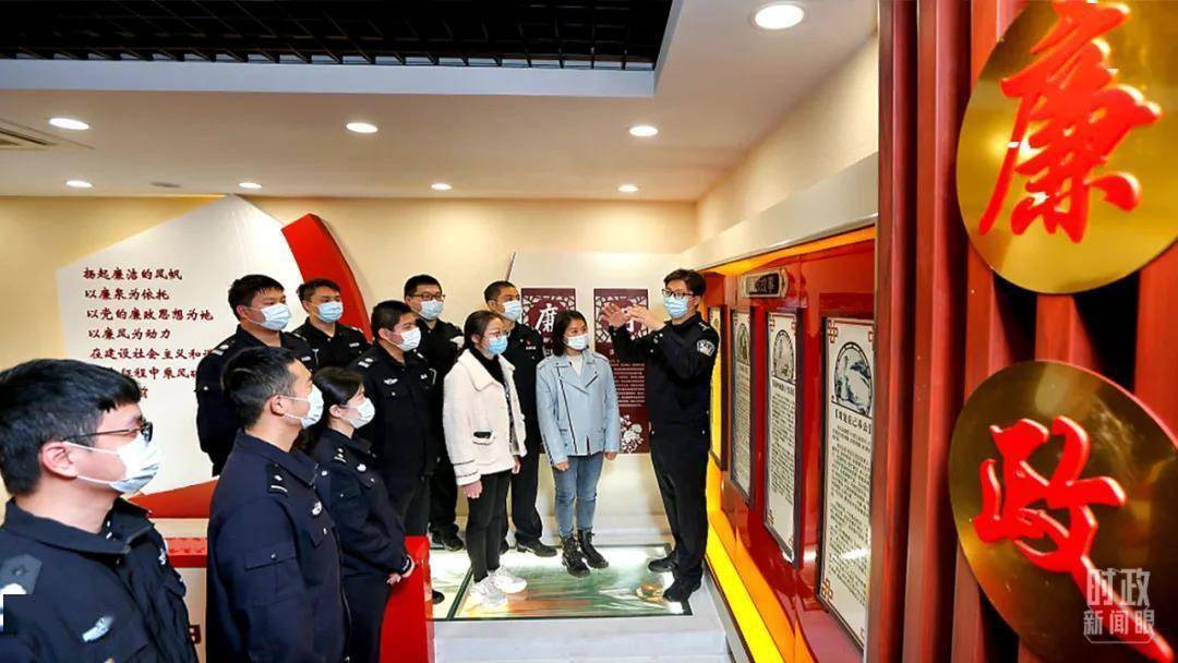 △2021年11月,江苏南京港出入境边防检查站民警参观廉政警示教育展厅。(图/视觉中国)