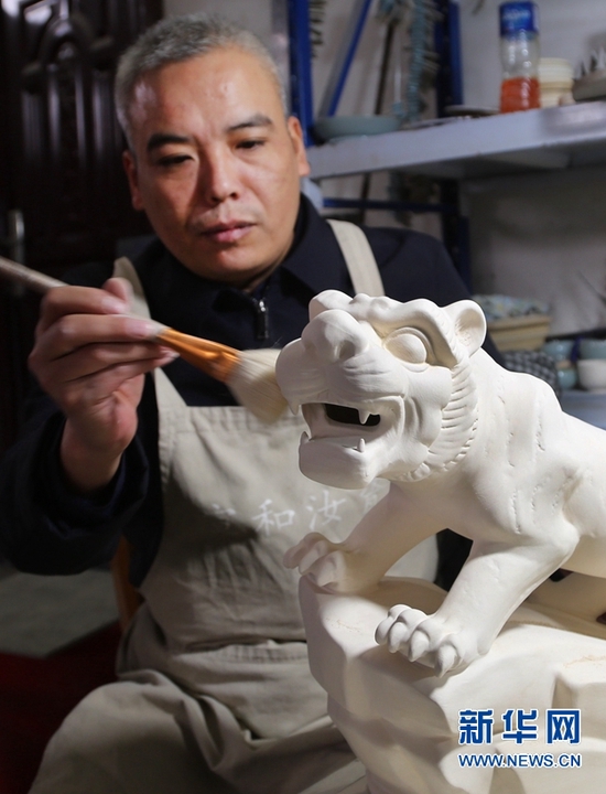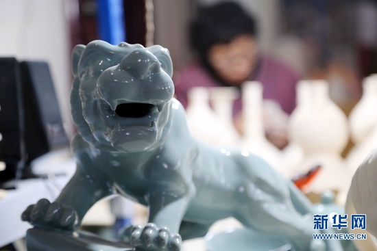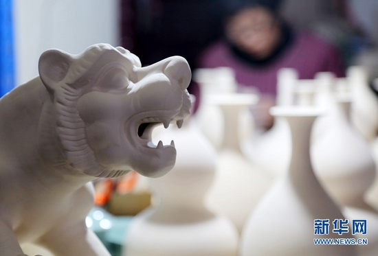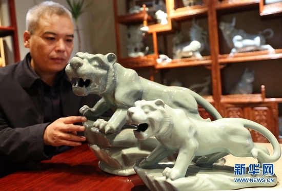 为迎接农历虎年的到来,在素有“中国汝瓷文化之乡”美誉的河南省宝丰县,一些汝瓷烧造艺人创作了以虎为主题的现代汝瓷产品,颇受群众喜爱,成为春节市场的“新宠”。新华网发(王双正摄)