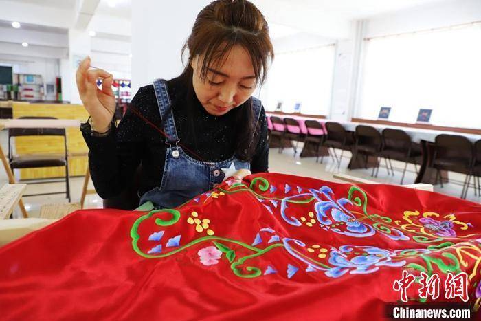 “金牌绣娘”梅荣告诉记者,以前带着母亲四处打工,如今刺绣让她的生活发生了翻天覆地的变化。
