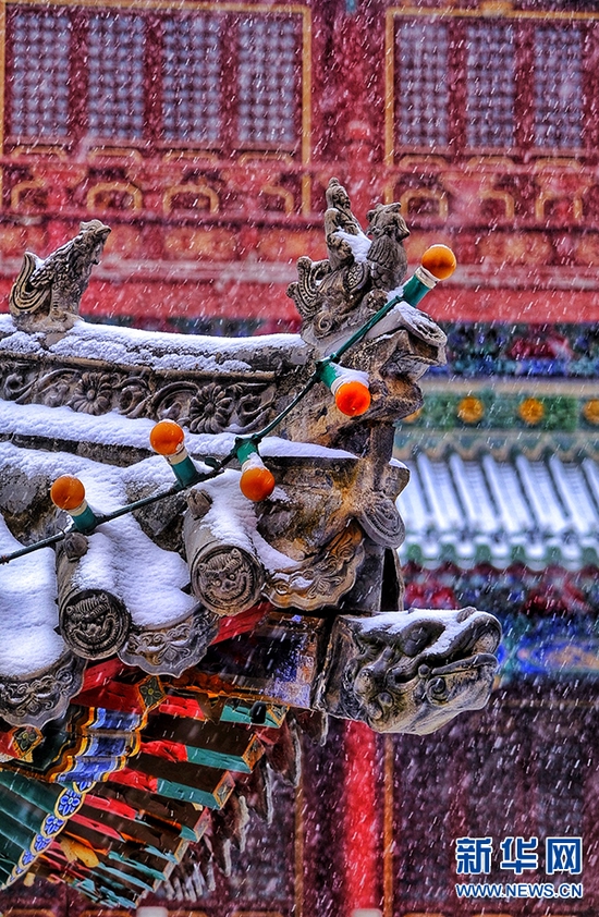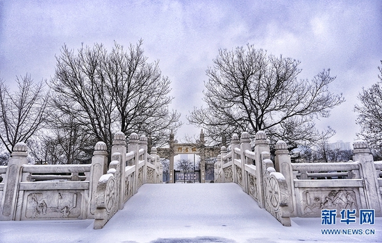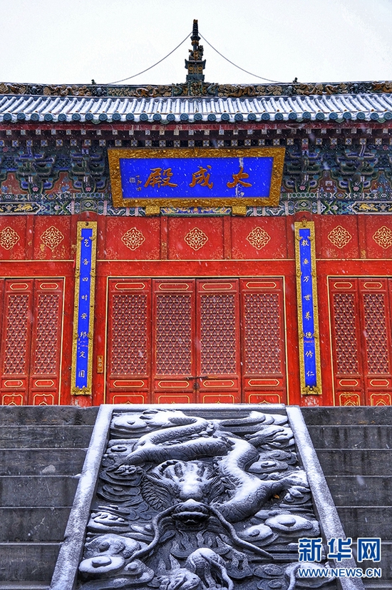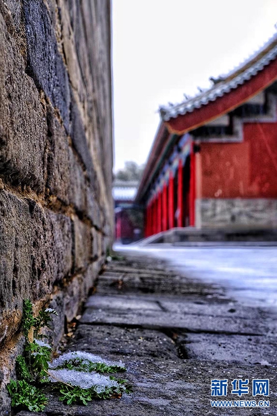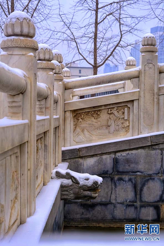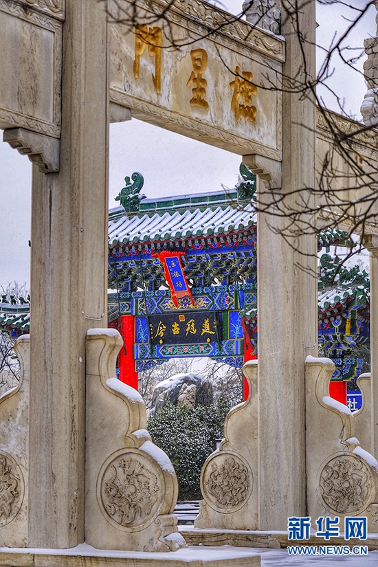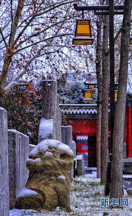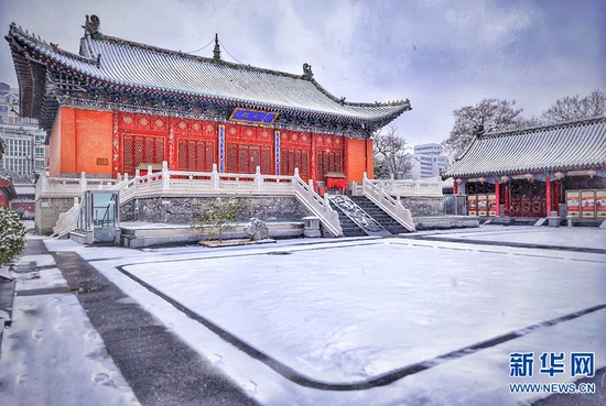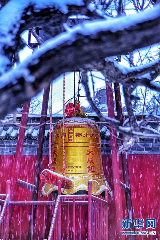 一场雪,像是给城市添加了一层滤镜。雪后,郑州文庙,红墙青瓦与皑皑白雪交相辉映,美不胜收,令人惊艳。新华网发(王羿 摄)