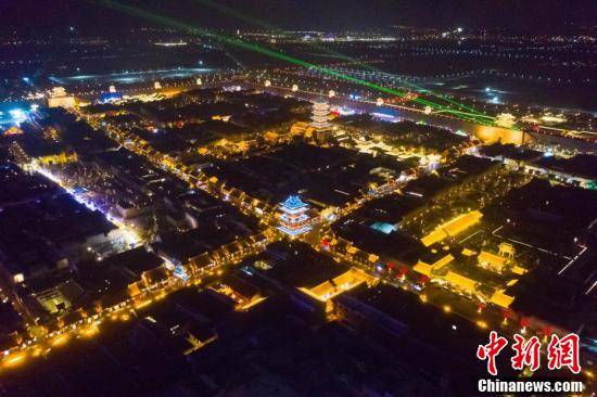 1月25日,山西太原古县城,“锦绣太原中国年 凤舞龙城花灯会”正式开幕。图为航拍太原古县城夜景。(无人机照片)
